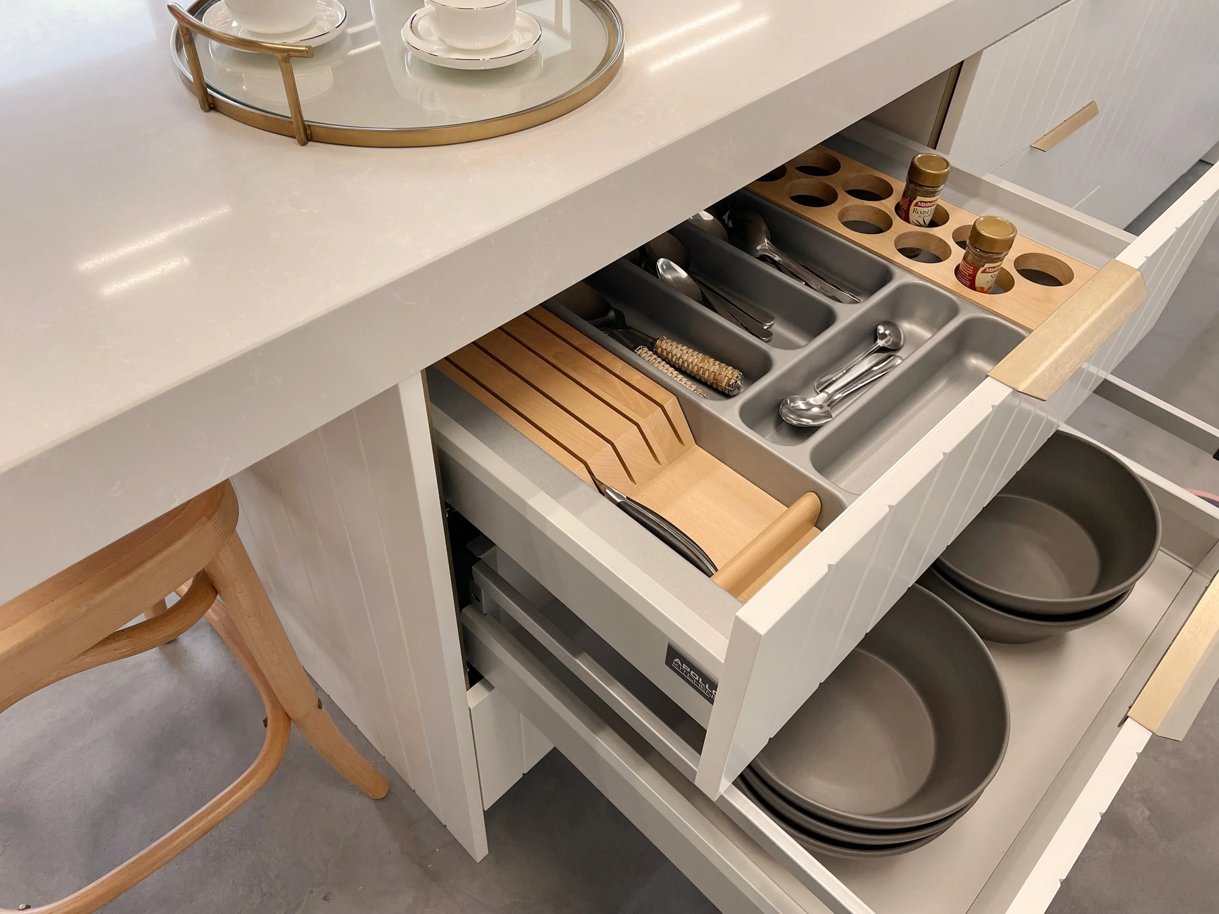 There are many different drawers inserts and accessories available, drawers are a fantastic investment. Accessories adds to the value by getting the full experience on a well thought out and functional space.